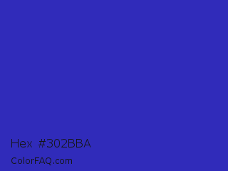 Hex #302bba Color is a normal indigo color and the nearest color is Governor Bay #2f3cb3. Hex code #302bba and RGB value is rgb(48,43,186). In RGB color space, this color is composed of 19% red, 17% green, 73% blue, In CMYK color space, this color is composed of 74% cyan, 77% magenta, 0% yellow , 27% black , In HSL color space, this color has a hue angle of 242° , 62% saturation and 45% lightness.
