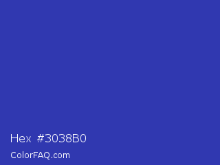 Hex #3038b0 Color is a normal blue color and the nearest color is Governor Bay #2f3cb3. Hex code #3038b0 and RGB value is rgb(48,56,176). In RGB color space, this color is composed of 19% red, 22% green, 69% blue, In CMYK color space, this color is composed of 73% cyan, 68% magenta, 0% yellow , 31% black , In HSL color space, this color has a hue angle of 236° , 57% saturation and 44% lightness.