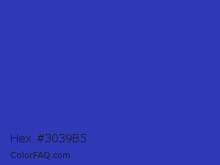 Hex #3039b5 Color is a normal blue color and the nearest color is Governor Bay #2f3cb3. Hex code #3039b5 and RGB value is rgb(48,57,181). In RGB color space, this color is composed of 19% red, 22% green, 71% blue, In CMYK color space, this color is composed of 73% cyan, 69% magenta, 0% yellow , 29% black , In HSL color space, this color has a hue angle of 236° , 58% saturation and 45% lightness.