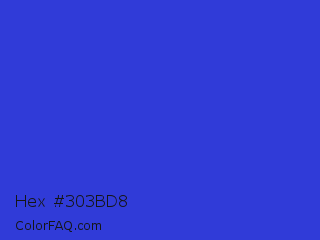Hex #303bd8 Color is a normal blue color and the nearest color is Palatinate Blue #273be2. Hex code #303bd8 and RGB value is rgb(48,59,216). In RGB color space, this color is composed of 19% red, 23% green, 85% blue, In CMYK color space, this color is composed of 78% cyan, 73% magenta, 0% yellow , 15% black , In HSL color space, this color has a hue angle of 236° , 68% saturation and 52% lightness.