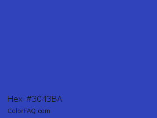 Hex #3043ba Color is a normal blue color and the nearest color is Governor Bay #2f3cb3. Hex code #3043ba and RGB value is rgb(48,67,186). In RGB color space, this color is composed of 19% red, 26% green, 73% blue, In CMYK color space, this color is composed of 74% cyan, 64% magenta, 0% yellow , 27% black , In HSL color space, this color has a hue angle of 232° , 59% saturation and 46% lightness.