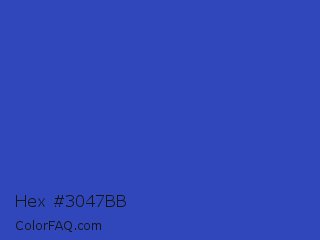 Hex #3047bb Color is a normal blue color and the nearest color is Violet Blue #324ab2. Hex code #3047bb and RGB value is rgb(48,71,187). In RGB color space, this color is composed of 19% red, 28% green, 73% blue, In CMYK color space, this color is composed of 74% cyan, 62% magenta, 0% yellow , 27% black , In HSL color space, this color has a hue angle of 230° , 59% saturation and 46% lightness.