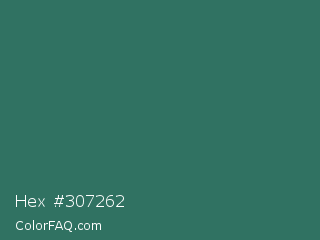 Hex #307262 Color is a normal cyan color and the nearest color is William #3a686c. Hex code #307262 and RGB value is rgb(48,114,98). In RGB color space, this color is composed of 19% red, 45% green, 38% blue, In CMYK color space, this color is composed of 58% cyan, 0% magenta, 14% yellow , 55% black , In HSL color space, this color has a hue angle of 165° , 41% saturation and 32% lightness.