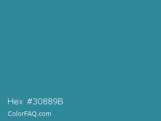 Hex #30889b Color is a normal cyan color and the nearest color is Astral #327da0. Hex code #30889b and RGB value is rgb(48,136,155). In RGB color space, this color is composed of 19% red, 53% green, 61% blue, In CMYK color space, this color is composed of 69% cyan, 12% magenta, 0% yellow , 39% black , In HSL color space, this color has a hue angle of 191° , 53% saturation and 40% lightness.