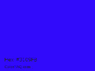 Hex #3109fb Color is a normal indigo color and the nearest color is Electric Ultramarine #3f00ff. Hex code #3109fb and RGB value is rgb(49,9,251). In RGB color space, this color is composed of 19% red, 4% green, 98% blue, In CMYK color space, this color is composed of 80% cyan, 96% magenta, 0% yellow , 2% black , In HSL color space, this color has a hue angle of 250° , 97% saturation and 51% lightness.
