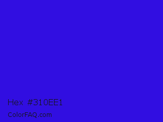 Hex #310ee1 Color is a normal indigo color and the nearest color is Interdimensional Blue #360ccc. Hex code #310ee1 and RGB value is rgb(49,14,225). In RGB color space, this color is composed of 19% red, 5% green, 88% blue, In CMYK color space, this color is composed of 78% cyan, 94% magenta, 0% yellow , 12% black , In HSL color space, this color has a hue angle of 250° , 88% saturation and 47% lightness.