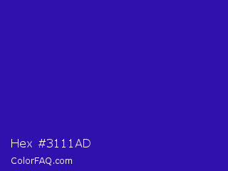 Hex #3111ad Color is a normal indigo color and the nearest color is Interdimensional Blue #360ccc. Hex code #3111ad and RGB value is rgb(49,17,173). In RGB color space, this color is composed of 19% red, 7% green, 68% blue, In CMYK color space, this color is composed of 72% cyan, 90% magenta, 0% yellow , 32% black , In HSL color space, this color has a hue angle of 252° , 82% saturation and 37% lightness.
