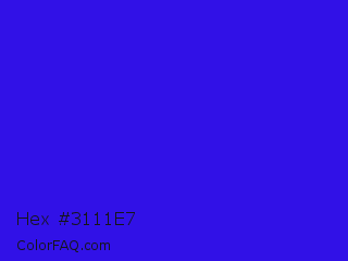 Hex #3111e7 Color is a normal indigo color and the nearest color is Bluebonnet #1c1cf0. Hex code #3111e7 and RGB value is rgb(49,17,231). In RGB color space, this color is composed of 19% red, 7% green, 91% blue, In CMYK color space, this color is composed of 79% cyan, 93% magenta, 0% yellow , 9% black , In HSL color space, this color has a hue angle of 249° , 86% saturation and 49% lightness.