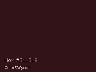 Hex #311318 Color is a very dark red color and the nearest color is Tamarind #341515. Hex code #311318 and RGB value is rgb(49,19,24). In RGB color space, this color is composed of 19% red, 7% green, 9% blue, In CMYK color space, this color is composed of 0% cyan, 61% magenta, 51% yellow , 81% black , In HSL color space, this color has a hue angle of 350° , 44% saturation and 13% lightness.