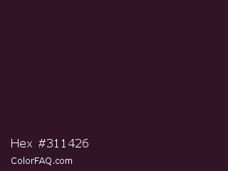 Hex #311426 Color is a very dark magenta color and the nearest color is Revolver #2c1632. Hex code #311426 and RGB value is rgb(49,20,38). In RGB color space, this color is composed of 19% red, 8% green, 15% blue, In CMYK color space, this color is composed of 0% cyan, 59% magenta, 22% yellow , 81% black , In HSL color space, this color has a hue angle of 323° , 42% saturation and 14% lightness.