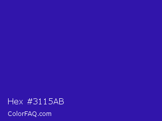 Hex #3115ab Color is a normal indigo color and the nearest color is Blue Gem #2c0e8c. Hex code #3115ab and RGB value is rgb(49,21,171). In RGB color space, this color is composed of 19% red, 8% green, 67% blue, In CMYK color space, this color is composed of 71% cyan, 88% magenta, 0% yellow , 33% black , In HSL color space, this color has a hue angle of 251° , 78% saturation and 38% lightness.