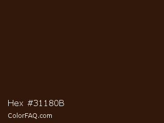 Hex #31180b Color is a very dark orange color and the nearest color is Zinnwaldite Brown #2c1608. Hex code #31180b and RGB value is rgb(49,24,11). In RGB color space, this color is composed of 19% red, 9% green, 4% blue, In CMYK color space, this color is composed of 0% cyan, 51% magenta, 78% yellow , 81% black , In HSL color space, this color has a hue angle of 21° , 63% saturation and 12% lightness.