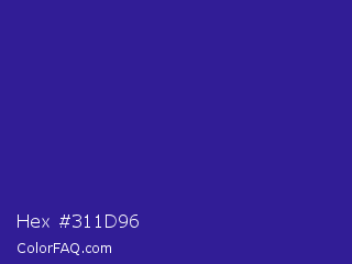 Hex #311d96 Color is a normal indigo color and the nearest color is Blue Gem #2c0e8c. Hex code #311d96 and RGB value is rgb(49,29,150). In RGB color space, this color is composed of 19% red, 11% green, 59% blue, In CMYK color space, this color is composed of 67% cyan, 81% magenta, 0% yellow , 41% black , In HSL color space, this color has a hue angle of 250° , 68% saturation and 35% lightness.