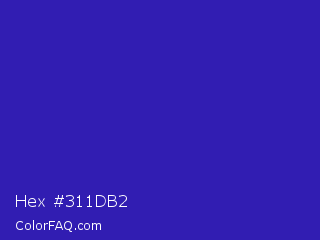 Hex #311db2 Color is a normal indigo color and the nearest color is Governor Bay #2f3cb3. Hex code #311db2 and RGB value is rgb(49,29,178). In RGB color space, this color is composed of 19% red, 11% green, 70% blue, In CMYK color space, this color is composed of 72% cyan, 84% magenta, 0% yellow , 30% black , In HSL color space, this color has a hue angle of 248° , 72% saturation and 41% lightness.
