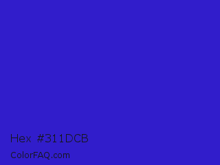 Hex #311dcb Color is a normal indigo color and the nearest color is Interdimensional Blue #360ccc. Hex code #311dcb and RGB value is rgb(49,29,203). In RGB color space, this color is composed of 19% red, 11% green, 80% blue, In CMYK color space, this color is composed of 76% cyan, 86% magenta, 0% yellow , 20% black , In HSL color space, this color has a hue angle of 247° , 75% saturation and 45% lightness.
