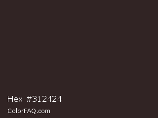 Hex #312424 Color is a very dark red color and the nearest color is Cocoa Brown #301f1e. Hex code #312424 and RGB value is rgb(49,36,36). In RGB color space, this color is composed of 19% red, 14% green, 14% blue, In CMYK color space, this color is composed of 0% cyan, 27% magenta, 27% yellow , 81% black , In HSL color space, this color has a hue angle of 0° , 15% saturation and 17% lightness.