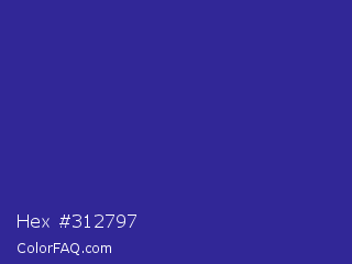 Hex #312797 Color is a normal indigo color and the nearest color is Blue Pigment #333399. Hex code #312797 and RGB value is rgb(49,39,151). In RGB color space, this color is composed of 19% red, 15% green, 59% blue, In CMYK color space, this color is composed of 68% cyan, 74% magenta, 0% yellow , 41% black , In HSL color space, this color has a hue angle of 245° , 59% saturation and 37% lightness.