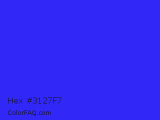 Hex #3127f7 Color is a normal indigo color and the nearest color is Bluebonnet #1c1cf0. Hex code #3127f7 and RGB value is rgb(49,39,247). In RGB color space, this color is composed of 19% red, 15% green, 97% blue, In CMYK color space, this color is composed of 80% cyan, 84% magenta, 0% yellow , 3% black , In HSL color space, this color has a hue angle of 243° , 93% saturation and 56% lightness.