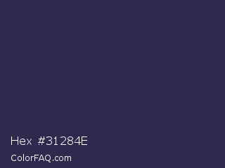 Hex #31284e Color is a dark indigo color and the nearest color is Martinique #363050. Hex code #31284e and RGB value is rgb(49,40,78). In RGB color space, this color is composed of 19% red, 16% green, 31% blue, In CMYK color space, this color is composed of 37% cyan, 49% magenta, 0% yellow , 69% black , In HSL color space, this color has a hue angle of 254° , 32% saturation and 23% lightness.