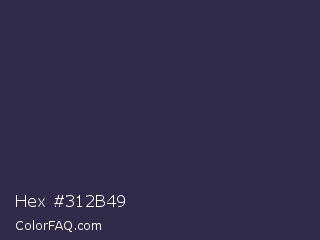 Hex #312b49 Color is a dark indigo color and the nearest color is Martinique #363050. Hex code #312b49 and RGB value is rgb(49,43,73). In RGB color space, this color is composed of 19% red, 17% green, 29% blue, In CMYK color space, this color is composed of 33% cyan, 41% magenta, 0% yellow , 71% black , In HSL color space, this color has a hue angle of 252° , 26% saturation and 23% lightness.