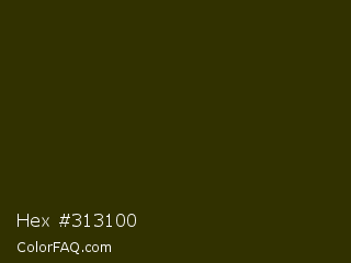 Hex #313100 Color is a very dark yellow color and the nearest color is Madras #3f3002. Hex code #313100 and RGB value is rgb(49,49,0). In RGB color space, this color is composed of 19% red, 19% green, 0% blue, In CMYK color space, this color is composed of 0% cyan, 0% magenta, 100% yellow , 81% black , In HSL color space, this color has a hue angle of 60° , 100% saturation and 10% lightness.