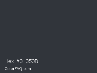 Hex #31353b Color is a very dark blue color and the nearest color is Outer Space Crayola #2d383a. Hex code #31353b and RGB value is rgb(49,53,59). In RGB color space, this color is composed of 19% red, 21% green, 23% blue, In CMYK color space, this color is composed of 17% cyan, 10% magenta, 0% yellow , 77% black , In HSL color space, this color has a hue angle of 216° , 9% saturation and 21% lightness.