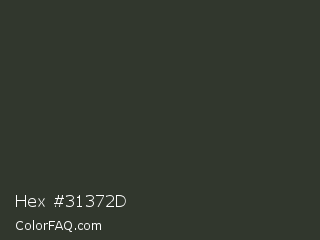 Hex #31372d Color is a very dark green color and the nearest color is Mine Shaft #323232. Hex code #31372d and RGB value is rgb(49,55,45). In RGB color space, this color is composed of 19% red, 22% green, 18% blue, In CMYK color space, this color is composed of 11% cyan, 0% magenta, 18% yellow , 78% black , In HSL color space, this color has a hue angle of 96° , 10% saturation and 20% lightness.