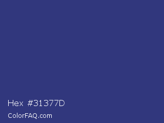 Hex #31377d Color is a normal blue color and the nearest color is Bay Of Many #273a81. Hex code #31377d and RGB value is rgb(49,55,125). In RGB color space, this color is composed of 19% red, 22% green, 49% blue, In CMYK color space, this color is composed of 61% cyan, 56% magenta, 0% yellow , 51% black , In HSL color space, this color has a hue angle of 235° , 44% saturation and 34% lightness.
