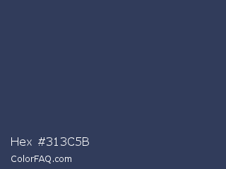 Hex #313c5b Color is a dark blue color and the nearest color is Rhino #2e3f62. Hex code #313c5b and RGB value is rgb(49,60,91). In RGB color space, this color is composed of 19% red, 24% green, 36% blue, In CMYK color space, this color is composed of 46% cyan, 34% magenta, 0% yellow , 64% black , In HSL color space, this color has a hue angle of 224° , 30% saturation and 27% lightness.
