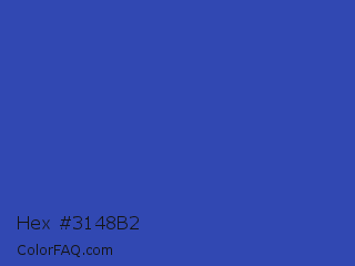 Hex #3148b2 Color is a normal blue color and the nearest color is Violet Blue #324ab2. Hex code #3148b2 and RGB value is rgb(49,72,178). In RGB color space, this color is composed of 19% red, 28% green, 70% blue, In CMYK color space, this color is composed of 72% cyan, 60% magenta, 0% yellow , 30% black , In HSL color space, this color has a hue angle of 229° , 57% saturation and 45% lightness.