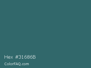 Hex #31686b Color is a normal cyan color and the nearest color is Casal #2f6168. Hex code #31686b and RGB value is rgb(49,104,107). In RGB color space, this color is composed of 19% red, 41% green, 42% blue, In CMYK color space, this color is composed of 54% cyan, 3% magenta, 0% yellow , 58% black , In HSL color space, this color has a hue angle of 183° , 37% saturation and 31% lightness.