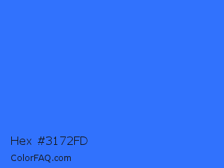 Hex #3172fd Color is a normal blue color and the nearest color is Blue Crayola #1f75fe. Hex code #3172fd and RGB value is rgb(49,114,253). In RGB color space, this color is composed of 19% red, 45% green, 99% blue, In CMYK color space, this color is composed of 81% cyan, 55% magenta, 0% yellow , 1% black , In HSL color space, this color has a hue angle of 221° , 98% saturation and 59% lightness.