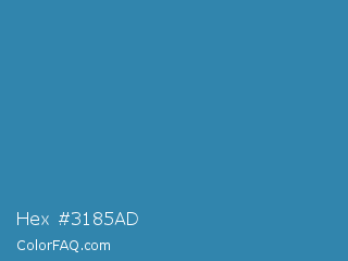 Hex #3185ad Color is a normal blue color and the nearest color is Astral #327da0. Hex code #3185ad and RGB value is rgb(49,133,173). In RGB color space, this color is composed of 19% red, 52% green, 68% blue, In CMYK color space, this color is composed of 72% cyan, 23% magenta, 0% yellow , 32% black , In HSL color space, this color has a hue angle of 199° , 56% saturation and 44% lightness.