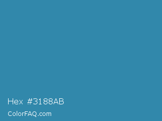 Hex #3188ab Color is a normal blue color and the nearest color is Astral #327da0. Hex code #3188ab and RGB value is rgb(49,136,171). In RGB color space, this color is composed of 19% red, 53% green, 67% blue, In CMYK color space, this color is composed of 71% cyan, 20% magenta, 0% yellow , 33% black , In HSL color space, this color has a hue angle of 197° , 55% saturation and 43% lightness.
