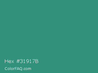 Hex #31917b Color is a normal cyan color and the nearest color is Illuminating Emerald #319177. Hex code #31917b and RGB value is rgb(49,145,123). In RGB color space, this color is composed of 19% red, 57% green, 48% blue, In CMYK color space, this color is composed of 66% cyan, 0% magenta, 15% yellow , 43% black , In HSL color space, this color has a hue angle of 166° , 49% saturation and 38% lightness.