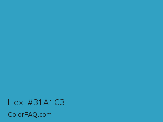 Hex #31a1c3 Color is a normal blue color and the nearest color is Pelorous #3eabbf. Hex code #31a1c3 and RGB value is rgb(49,161,195). In RGB color space, this color is composed of 19% red, 63% green, 76% blue, In CMYK color space, this color is composed of 75% cyan, 17% magenta, 0% yellow , 24% black , In HSL color space, this color has a hue angle of 194° , 60% saturation and 48% lightness.