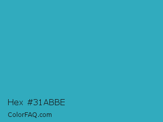 Hex #31abbe Color is a normal cyan color and the nearest color is Pelorous #3eabbf. Hex code #31abbe and RGB value is rgb(49,171,190). In RGB color space, this color is composed of 19% red, 67% green, 75% blue, In CMYK color space, this color is composed of 74% cyan, 10% magenta, 0% yellow , 25% black , In HSL color space, this color has a hue angle of 188° , 59% saturation and 47% lightness.