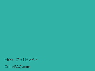 Hex #31b2a7 Color is a normal cyan color and the nearest color is Keppel #3ab09e. Hex code #31b2a7 and RGB value is rgb(49,178,167). In RGB color space, this color is composed of 19% red, 70% green, 65% blue, In CMYK color space, this color is composed of 72% cyan, 0% magenta, 6% yellow , 30% black , In HSL color space, this color has a hue angle of 175° , 57% saturation and 45% lightness.