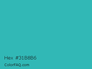 Hex #31b8b6 Color is a normal cyan color and the nearest color is Maximum Blue Green #30bfbf. Hex code #31b8b6 and RGB value is rgb(49,184,182). In RGB color space, this color is composed of 19% red, 72% green, 71% blue, In CMYK color space, this color is composed of 73% cyan, 0% magenta, 1% yellow , 28% black , In HSL color space, this color has a hue angle of 179° , 58% saturation and 46% lightness.