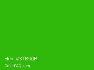 Hex #31b90b Color is a normal green color and the nearest color is Kelly Green #4cbb17. Hex code #31b90b and RGB value is rgb(49,185,11). In RGB color space, this color is composed of 19% red, 73% green, 4% blue, In CMYK color space, this color is composed of 74% cyan, 0% magenta, 94% yellow , 27% black , In HSL color space, this color has a hue angle of 107° , 89% saturation and 38% lightness.