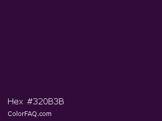 Hex #320b3b Color is a very dark purple color and the nearest color is Valentino #350e42. Hex code #320b3b and RGB value is rgb(50,11,59). In RGB color space, this color is composed of 20% red, 4% green, 23% blue, In CMYK color space, this color is composed of 15% cyan, 81% magenta, 0% yellow , 77% black , In HSL color space, this color has a hue angle of 289° , 69% saturation and 14% lightness.