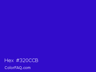 Hex #320ccb Color is a normal indigo color and the nearest color is Interdimensional Blue #360ccc. Hex code #320ccb and RGB value is rgb(50,12,203). In RGB color space, this color is composed of 20% red, 5% green, 80% blue, In CMYK color space, this color is composed of 75% cyan, 94% magenta, 0% yellow , 20% black , In HSL color space, this color has a hue angle of 252° , 89% saturation and 42% lightness.