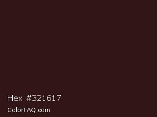 Hex #321617 Color is a very dark red color and the nearest color is Tamarind #341515. Hex code #321617 and RGB value is rgb(50,22,23). In RGB color space, this color is composed of 20% red, 9% green, 9% blue, In CMYK color space, this color is composed of 0% cyan, 56% magenta, 54% yellow , 80% black , In HSL color space, this color has a hue angle of 358° , 39% saturation and 14% lightness.