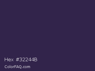 Hex #32244b Color is a very dark violet color and the nearest color is Deep Grape #381a51. Hex code #32244b and RGB value is rgb(50,36,75). In RGB color space, this color is composed of 20% red, 14% green, 29% blue, In CMYK color space, this color is composed of 33% cyan, 52% magenta, 0% yellow , 71% black , In HSL color space, this color has a hue angle of 262° , 35% saturation and 22% lightness.