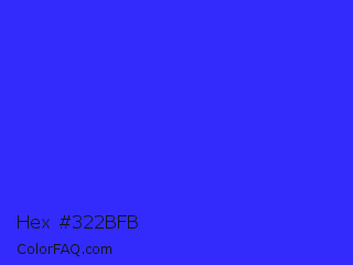 Hex #322bfb Color is a normal indigo color and the nearest color is Bluebonnet #1c1cf0. Hex code #322bfb and RGB value is rgb(50,43,251). In RGB color space, this color is composed of 20% red, 17% green, 98% blue, In CMYK color space, this color is composed of 80% cyan, 83% magenta, 0% yellow , 2% black , In HSL color space, this color has a hue angle of 242° , 96% saturation and 58% lightness.