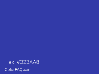 Hex #323aa8 Color is a normal blue color and the nearest color is Governor Bay #2f3cb3. Hex code #323aa8 and RGB value is rgb(50,58,168). In RGB color space, this color is composed of 20% red, 23% green, 66% blue, In CMYK color space, this color is composed of 70% cyan, 65% magenta, 0% yellow , 34% black , In HSL color space, this color has a hue angle of 236° , 54% saturation and 43% lightness.