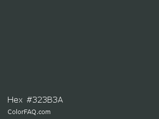 Hex #323b3a Color is a very dark cyan color and the nearest color is Onyx #353839. Hex code #323b3a and RGB value is rgb(50,59,58). In RGB color space, this color is composed of 20% red, 23% green, 23% blue, In CMYK color space, this color is composed of 15% cyan, 0% magenta, 2% yellow , 77% black , In HSL color space, this color has a hue angle of 173° , 8% saturation and 21% lightness.