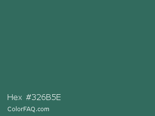 Hex #326b5e Color is a normal cyan color and the nearest color is Casal #2f6168. Hex code #326b5e and RGB value is rgb(50,107,94). In RGB color space, this color is composed of 20% red, 42% green, 37% blue, In CMYK color space, this color is composed of 53% cyan, 0% magenta, 12% yellow , 58% black , In HSL color space, this color has a hue angle of 166° , 36% saturation and 31% lightness.