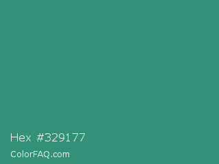 Hex #329177 Color is a normal cyan color and the nearest color is Illuminating Emerald #319177. Hex code #329177 and RGB value is rgb(50,145,119). In RGB color space, this color is composed of 20% red, 57% green, 47% blue, In CMYK color space, this color is composed of 66% cyan, 0% magenta, 18% yellow , 43% black , In HSL color space, this color has a hue angle of 164° , 49% saturation and 38% lightness.