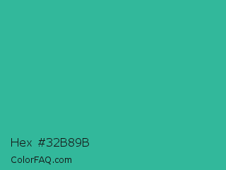 Hex #32b89b Color is a normal cyan color and the nearest color is Keppel #3ab09e. Hex code #32b89b and RGB value is rgb(50,184,155). In RGB color space, this color is composed of 20% red, 72% green, 61% blue, In CMYK color space, this color is composed of 73% cyan, 0% magenta, 16% yellow , 28% black , In HSL color space, this color has a hue angle of 167° , 57% saturation and 46% lightness.